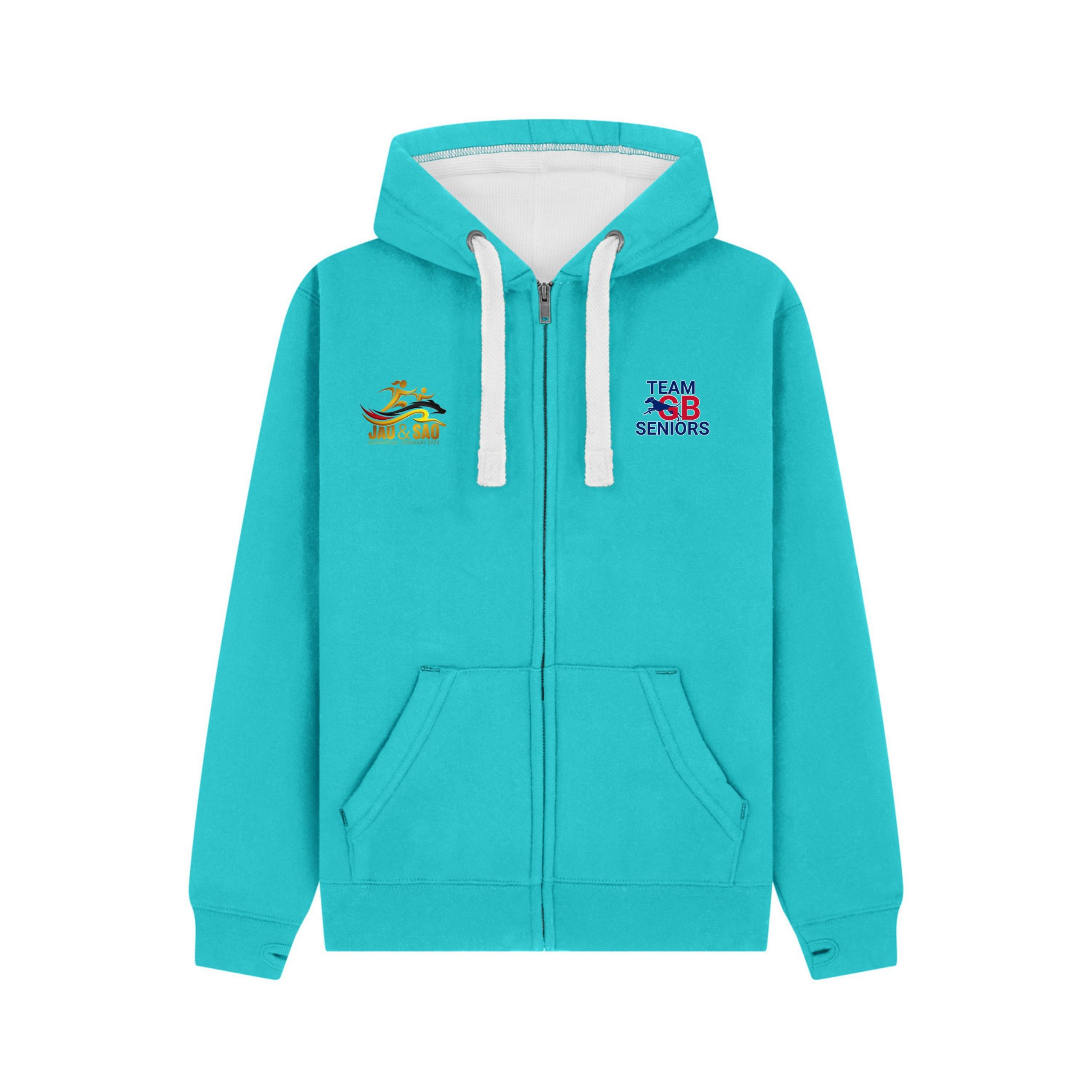 - Contrast colour waffle-lined hood and chunky flat cords.